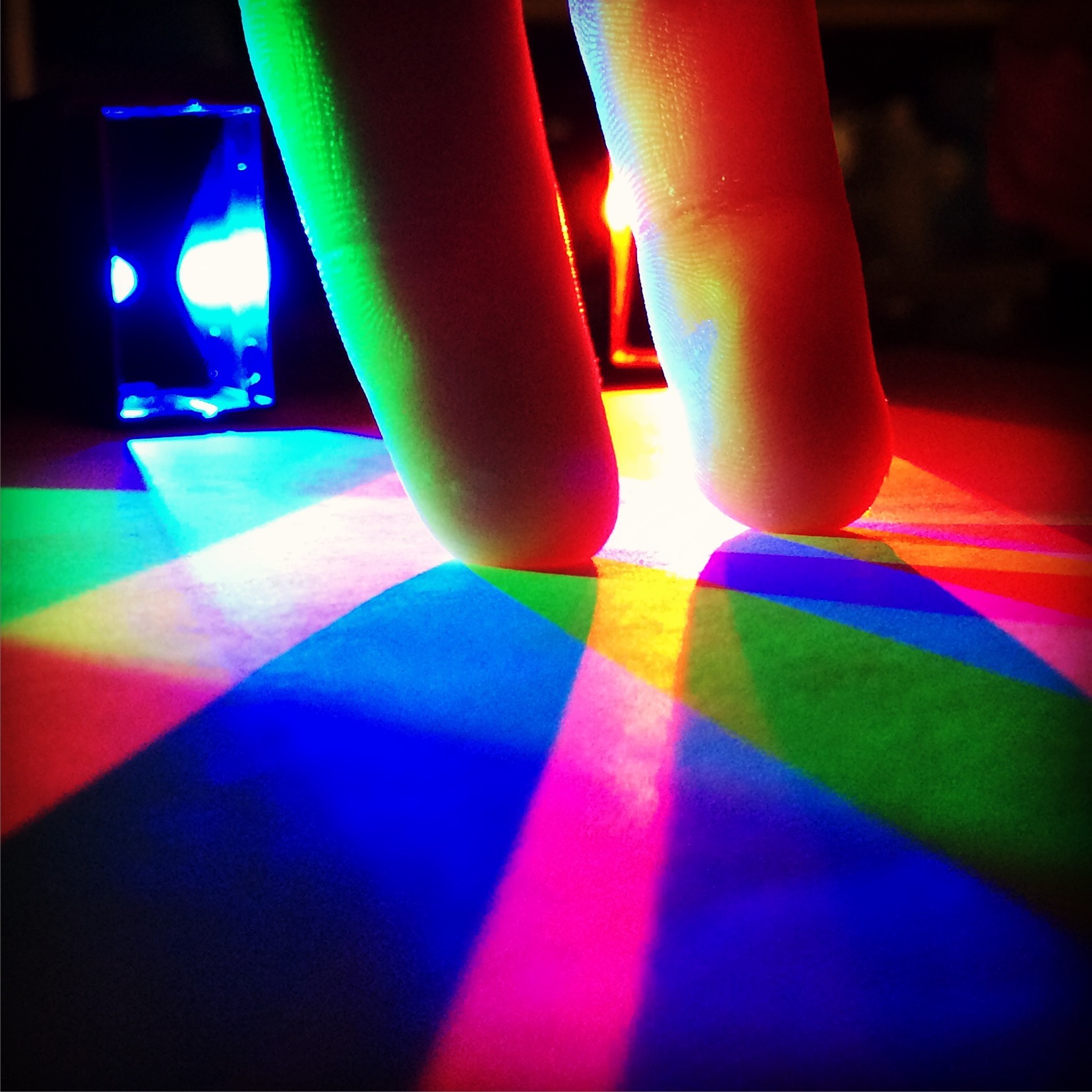 where even the shadows make interesting color combinations. This gets me a jumping-up-and-down kind of excited. Even better, kids will get to play with this stuff on Monday, along with our lenses and mirrors and sunscope and filters and pinhole cameras and new microscopes and: